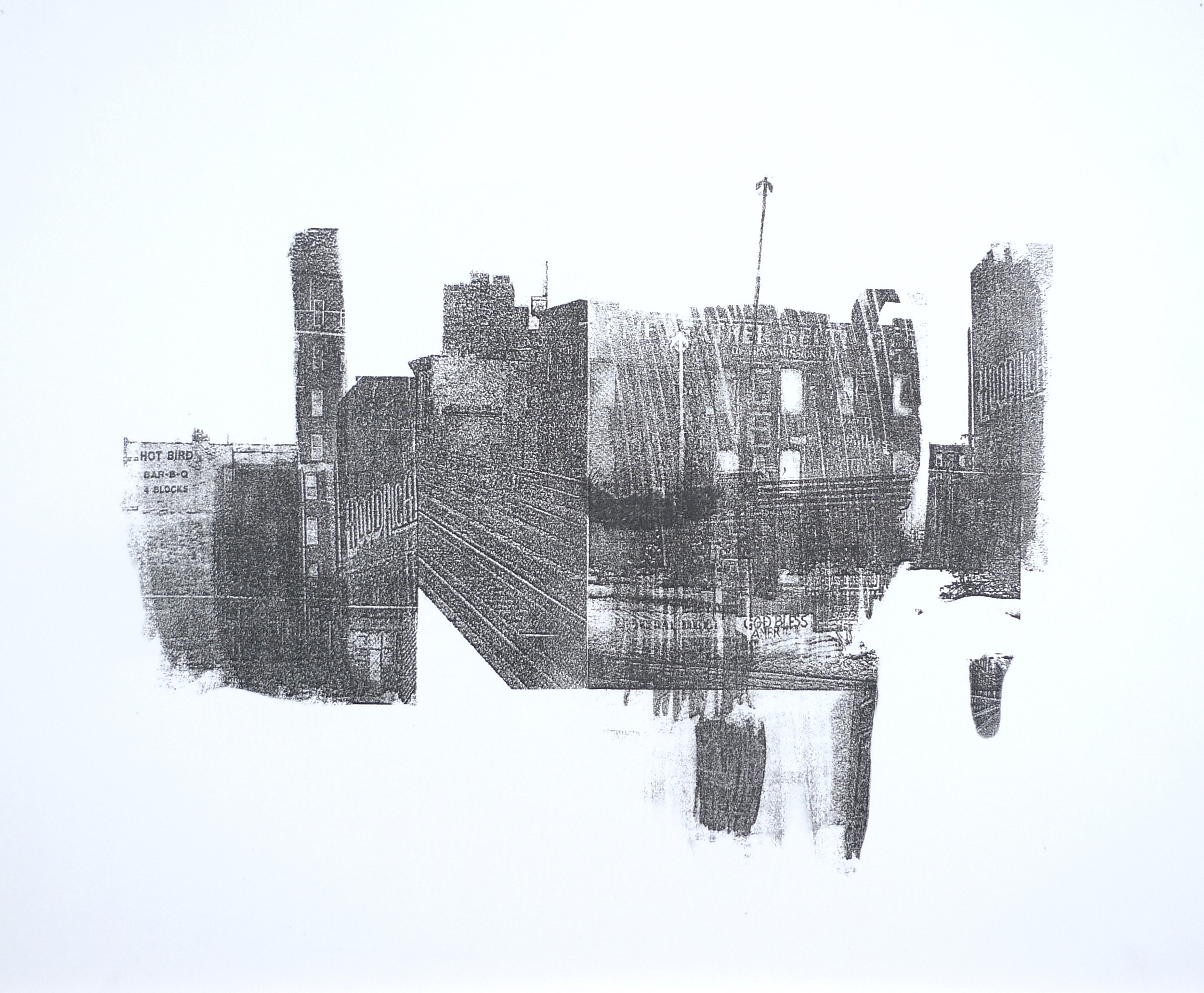 Calvin Anthony was active in the “New Bohemia” of Williamsburg, Brooklyn, and witnessed firsthand the rapid transformation of that diverse and creative haven into a hub of upscale living. His collagist drawings depict neighborhoods in decay and renewal, and explore with wit and pictorial invention the psychological and visual complexities of an urban environment in upheaval. His disillusionment with the commercialization of the art world led Anthony to leave New York City in 2010. Much of his work in Slices is being exhibited for the first time.